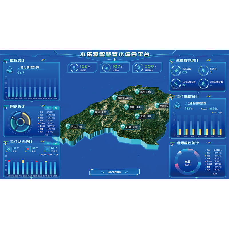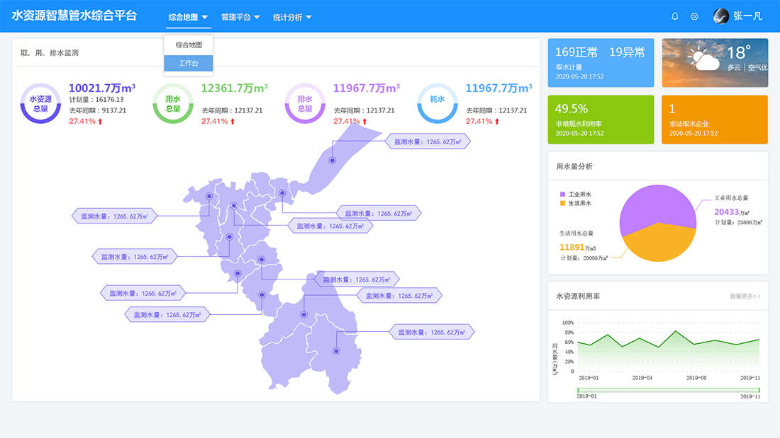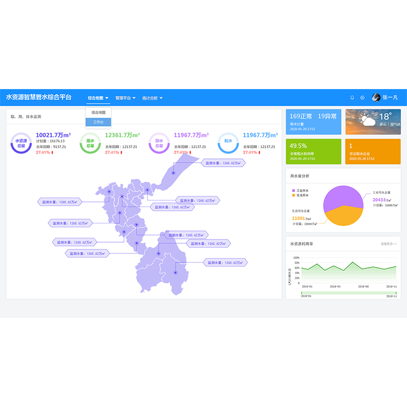 平臺(tái)以數(shù)字化手段變革水資源管理方式,通過(guò)多部門(mén)協(xié)同、深層細(xì)化管水維度,實(shí)現(xiàn)水資源用水總量控制以及生活、工業(yè)、農(nóng)業(yè)分場(chǎng)景用水控制。全力提升算力,構(gòu)建管網(wǎng)異常監(jiān)測(cè)模型,管網(wǎng)漏損預(yù)警模型、流程重塑模型等研判手段,致力提升水資源節(jié)水及管水效率。